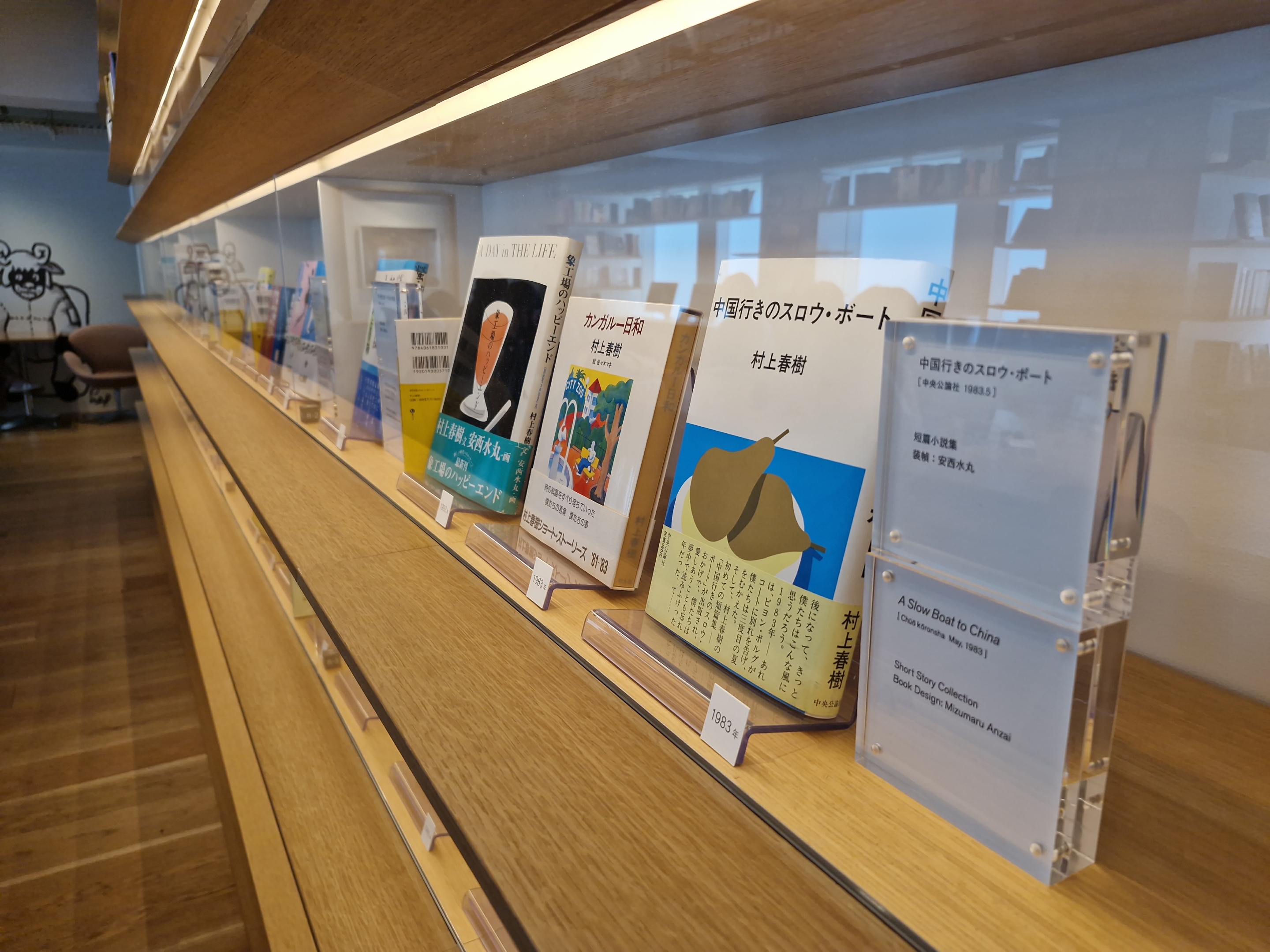 터널을 따라 올라간 지상 1층에는 앞서 말한 것처럼 하루키가 출간한 다양한 판본과 세계 각국의 언어로 번역된 하루키의 작품이 전시되어 있는 ‘상설전’의 공간이다. 일부 도서는 벽면의 유리 진열장안에 전시되어 있으나 이를 제외한 대부분의 도서들은 자유롭게 가져가 읽을 수 있게 되어 있었다. 또한 마치 도서관에 온 것처럼 지상 1층의 대부분의 공간은 책장과 함께 편하게 책을 읽을 수 있는 공간들로 구성된 것 같았다. 이러한 독서 공간 사이에는 자연스럽게 하루키가 피터캣을 운영하던 시절에 사용하던 목재 테이블과 의자가 울타리나 유리 진열장도 없이 전시되어있다. 이를 통해 알 수 있듯 국제문학관의 가장 큰 특징 두 가지는 기록관, 박물관, 도서관이라는 3가지 기능을 동시에 수행하고 있는 라키비움이라는 점과 이 세 가지 기능의 경계가 상당히 모호하고 중첩되어 있다는 점이다. 문학관에 따라 특정 기능에 더 집중하거나 치우치는 경향이 발생할 수 있으나 국제문학관의 경우는 프로젝트 설계 당시부터 이러한 의도를 가지고 있었던 것 같다. 한국의 문학관을 떠올려보았을 때는 흔히 박물관과 같은 모습을 떠올리는 경우가 많다. 유리진열장 안에 전시된 작가들의 원고나 유품, 자료 등이 그러한 예시이다. 그러나 국제문학관은 하루키와 관련된 자료를 전시함과 동시에 이를 ‘박제’하지 않는다. 오히려 문학관이 생활공간의 일부가 될 수 있도록 고심했던 노력이 국제문학관 곳곳에서 드러난다.