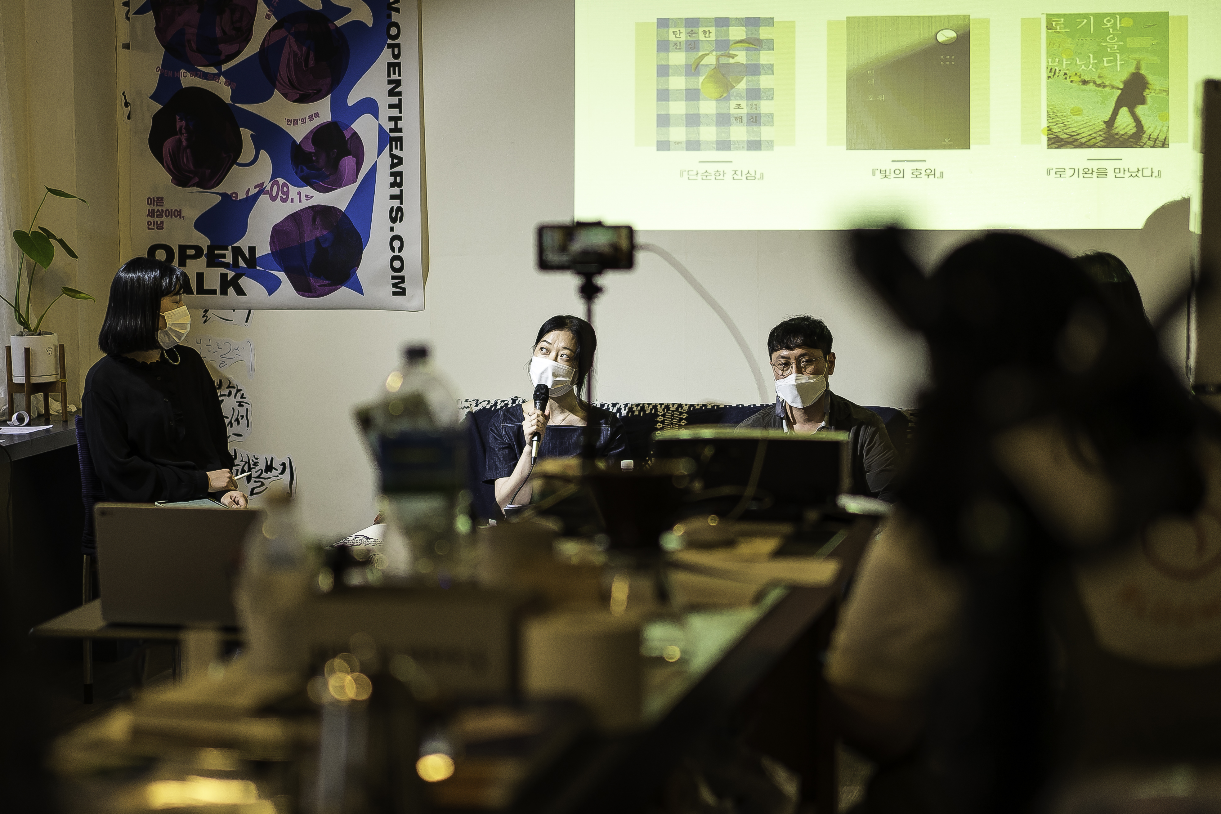 작년 9월, 부산 원도심 문화회복프로젝트 〈OPEN THE DOOR, OPEN THE ARTS〉의 기획 행사에 젠더·어펙트연구소가 초대되는 뜻 깊은 일이 있었다. 한국문화예술위원회가 후원하고 플랜비문화예술협동조합이 주최한 이 프로젝트는 무엇보다 〈회복하는 글쓰기〉, 〈생활예술모임 곳간〉이라는, 지역을 기반으로 한 정동적 읽기-쓰기를 지속해온 모임 공간을 지원받아 진행되었다는 점에서 남다른 의미가 있었다. 타자에 대한 이해와 글쓰기를 지속해온 작가 조해진과 웹진 〈젠더·어펙트〉 편집위원들이 함께 한 이 대담은 “‘연결’의 행복”이라는 주제를 다각도로 살펴볼 수 있는 자리였다. 웹진 〈젠더·어펙트〉 3호의 〈기획〉란에는 조해진의 소설을 읽고 쓰고 만났던 그때의 경험에 말들과 느낌들이 덧대어진 원고들이 수록되었다. 새로이 붙여진 살은 작가와 시민들, 젠더·어펙트연구소가 함께 만나 이야기를 주고받았던 부산 중앙동의 정동적 공간을 웹진 공간에 다시금 불러들인다. 글을 읽을 많은 독자들도 저마다의 ‘회복’의 시공간에 재차, 새롭게 접속할 수 있으리라 생각된다.