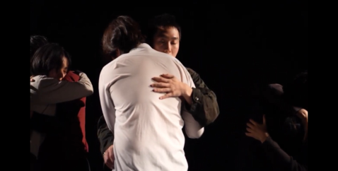 시대를 달리하는 생존자 모두가 벽과 벽 사이 무대에 있고 과거에 여전히 고통스러워하며 떠돌다 서로 안는 장면이 연출된다. 이는 고통 속에서도 끈질기고 용기 있게 다른 사람들을 사랑한 피해자들을 증거한다. 자신과 자신의 가족들이 전쟁 아래에서 경험해야 했던 참혹한 역사를 수용하는 동시에, 그러한 고통 속에서도 서로에게 건넨 사랑을 마주하게 되는 것이다. 허공을 휘젓고 갈 곳 잃은 두 손을 똑바로 바라보는 장면, 자신의 몸을 감각하고 사랑하게 되는 과정에서 피해자들이 가진 감정도 보이기 시작한다. 웃거나 울고 웃는 듯 울고 우는 듯 웃으며 춤을 춘다. 이런 반응은 서로에게 전염되어 감정을 부르고 감정으로 응답한다. 이는 단지 과거에 어떠한 일이 있었는지를 확인하는 차원이 아니라, 서로 감정을 공유하고 함께 느끼는 경험을 통해 생존자의 몸 그 자체를 이해하게 되는 것이다.